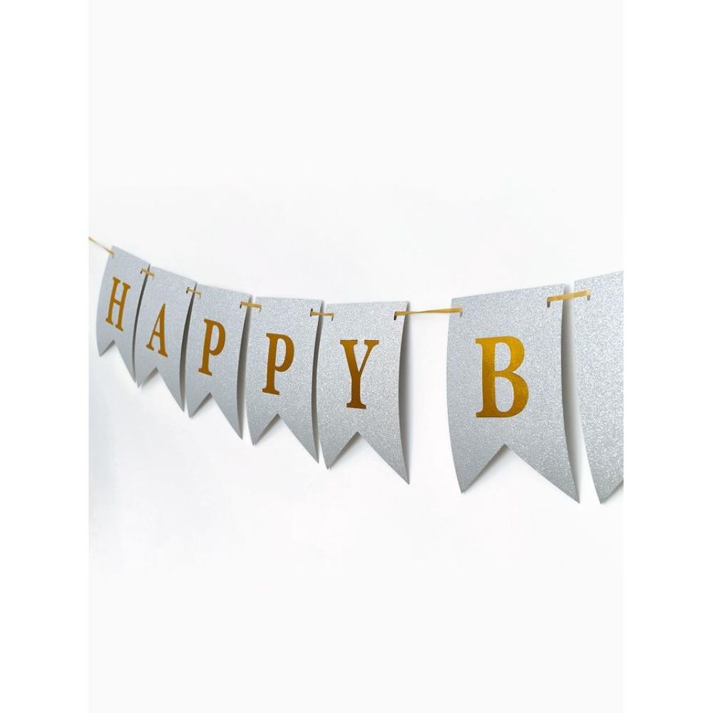 Гирлянда фигурная 'Happy Birthday' золотая бумажная 200см
