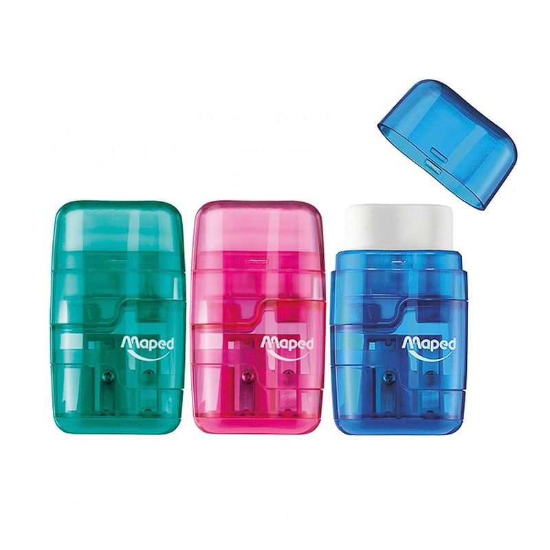 Точилка 2 диаметра Maped Connect с контейнером и ластиком цвета ассорти