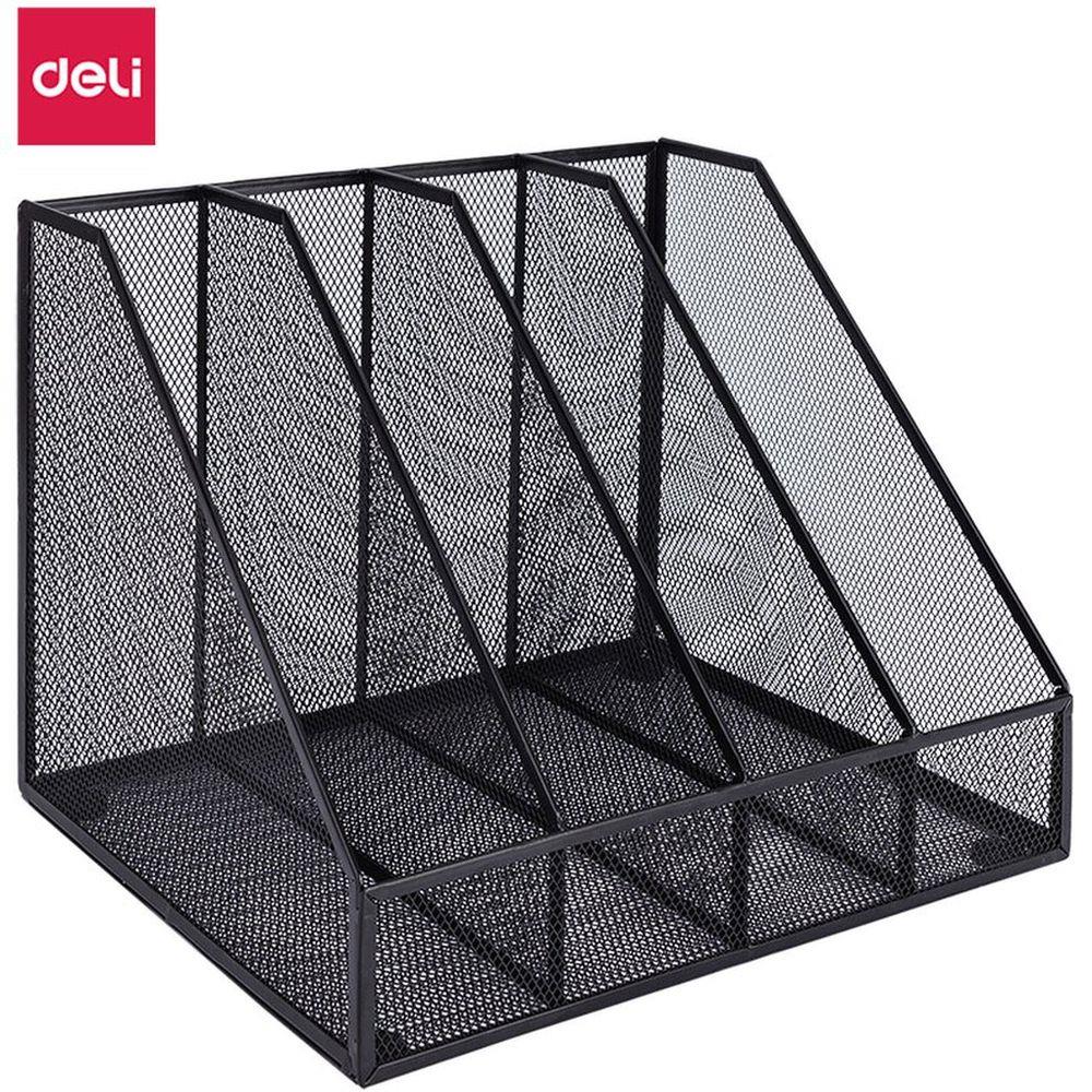 Устойчивый металлический вертикальный накопитель Deli с 4 отделениями для папок, бумаг или каталогов.