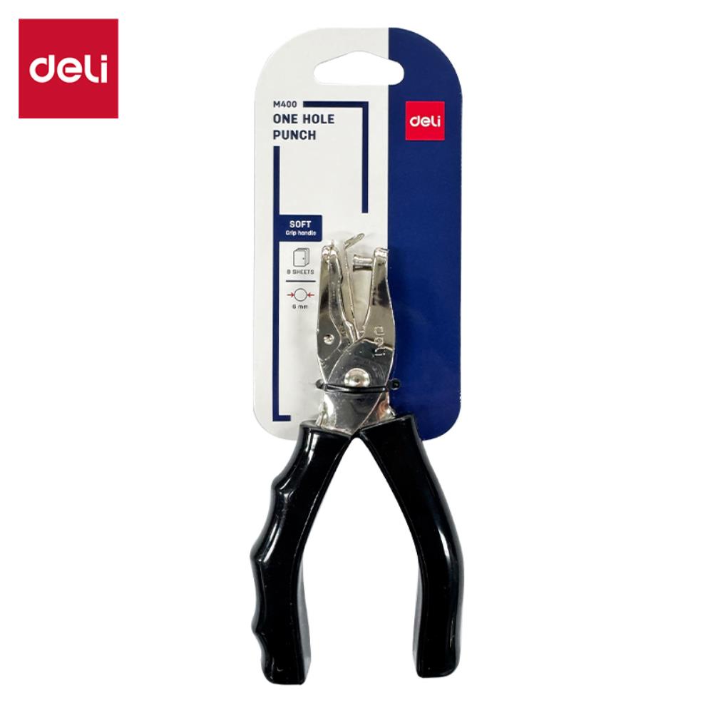 Дырокол Deli пробивает 1 круглое отверстие.
