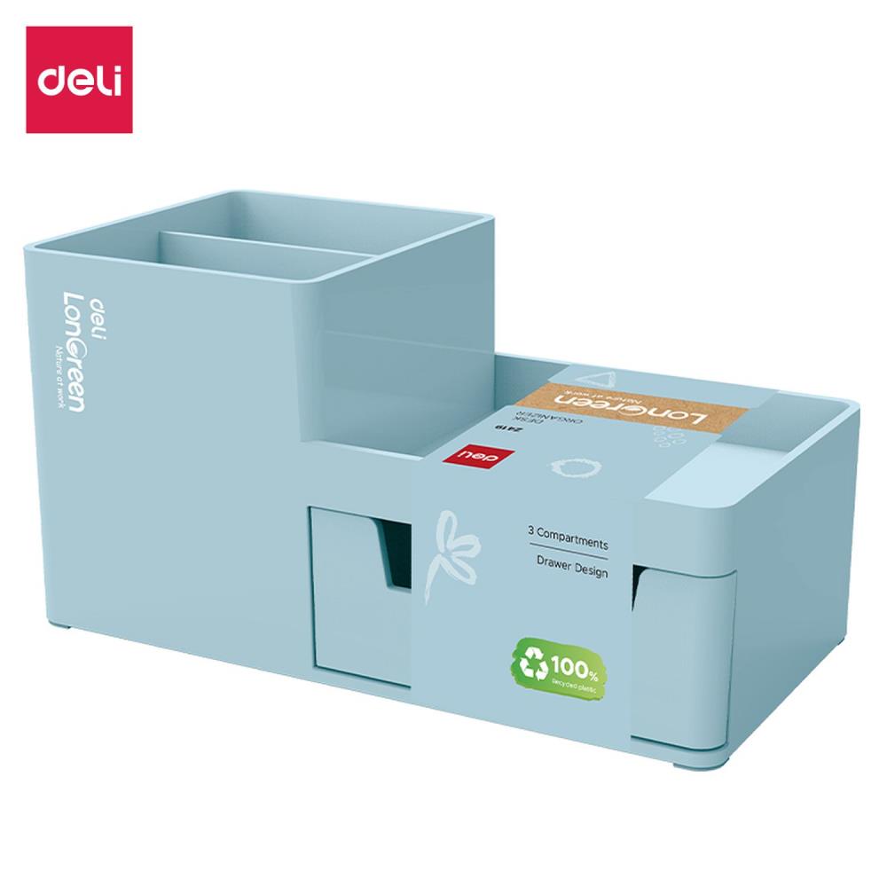 Настольная вместительная и устойчивая подставка Deli эко серии 'LonGreen' с корпусом на 100% из PCR - пластик вторичной переработки.
