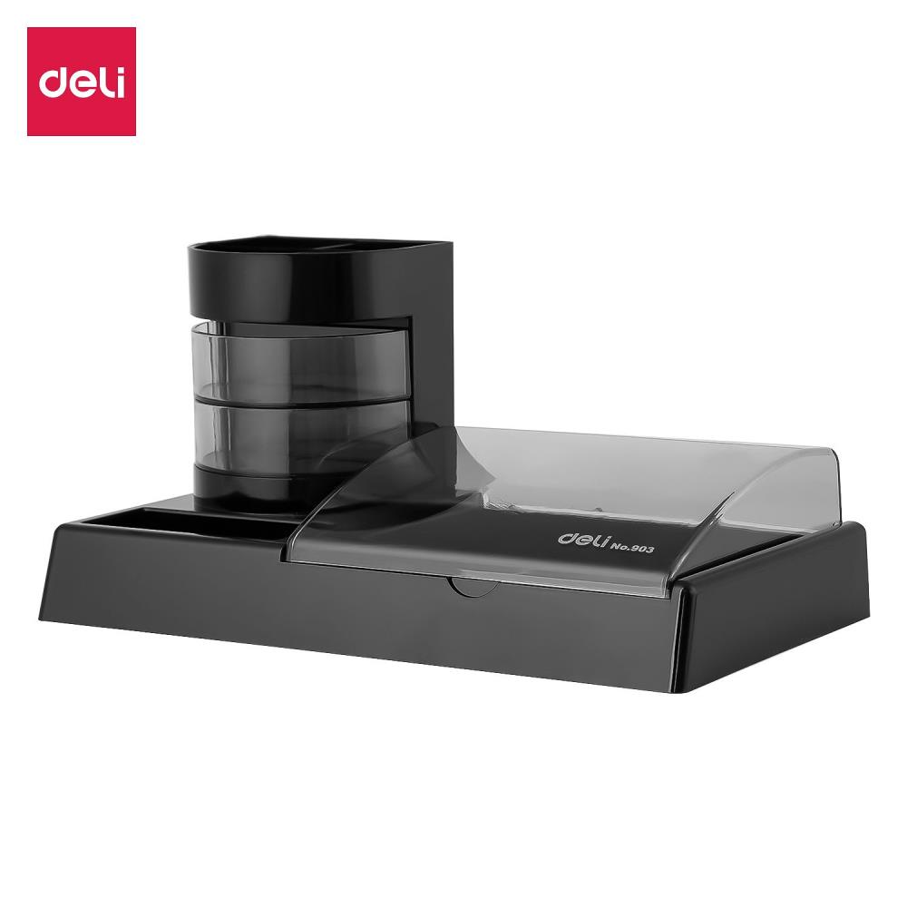 Подставка для принадлежностей Deli 'Multi' 7 отделений 26x11х13см с 2 поворотных ящичка для канцелярских мелочей. Материал: ABS пластик Размеры: 262х133х74мм Вес: 0.26кг
