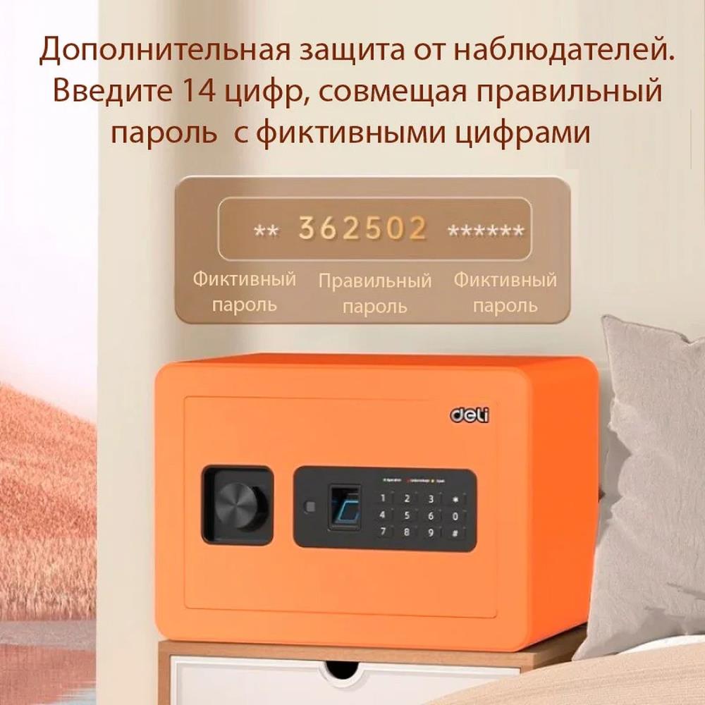 - комбинированная разблокировка сейфа: отпечаток пальца, ключ и пароль - возможны комбинации методов разблокировки