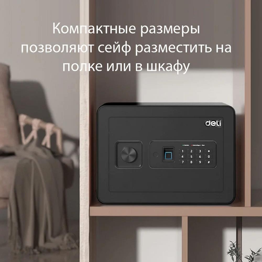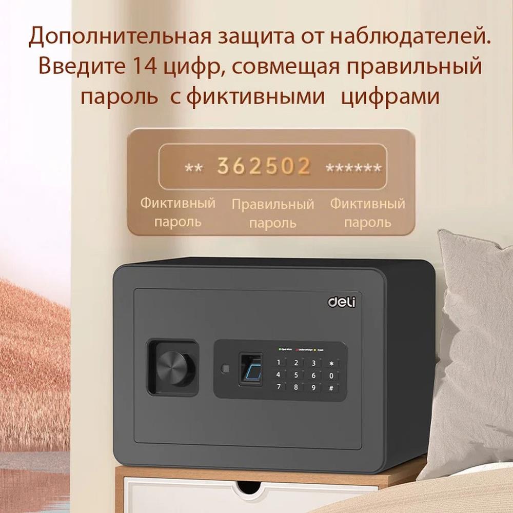 - комбинированная разблокировка сейфа: отпечаток пальца, ключ и пароль - возможны комбинации методов разблокировки