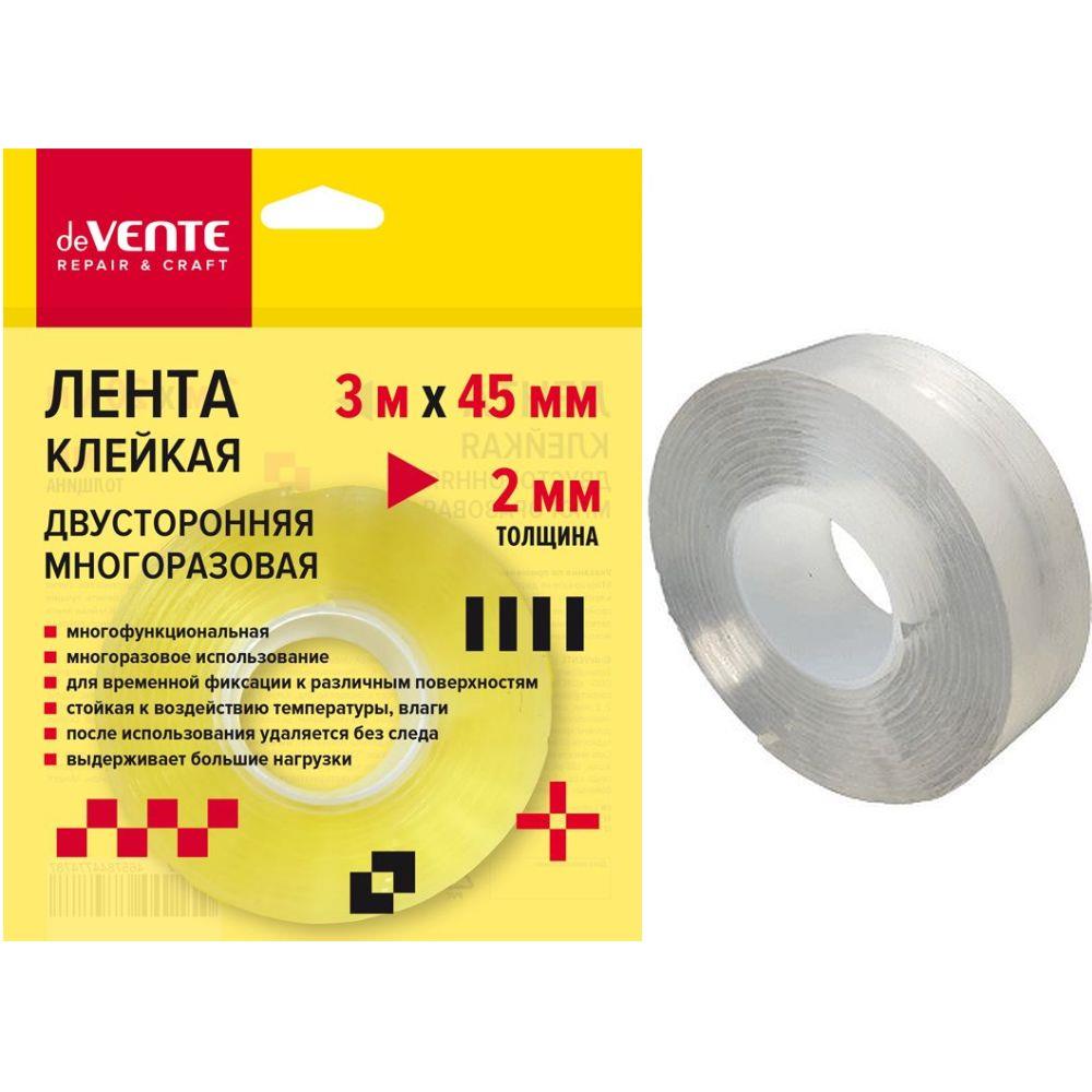 Многоразовая прозрачная двусторонняя клейкая лента deVENTE 'Nano Tape' для временной фиксации предметов к различным поверхностям.