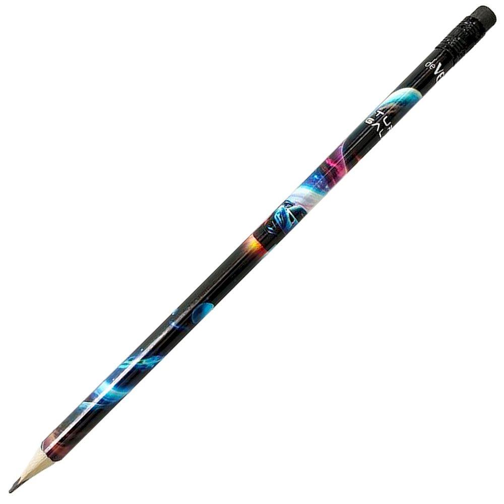 Заточенный чернографитный карандаш с трёхгранным корпусом с ластиком.
