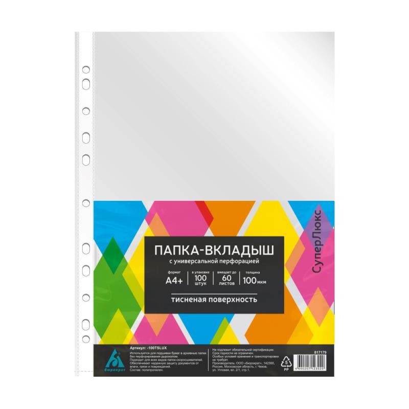 Мультифора 100мкм A4+ тиснёная 100шт Бюрократ Супер Люкс