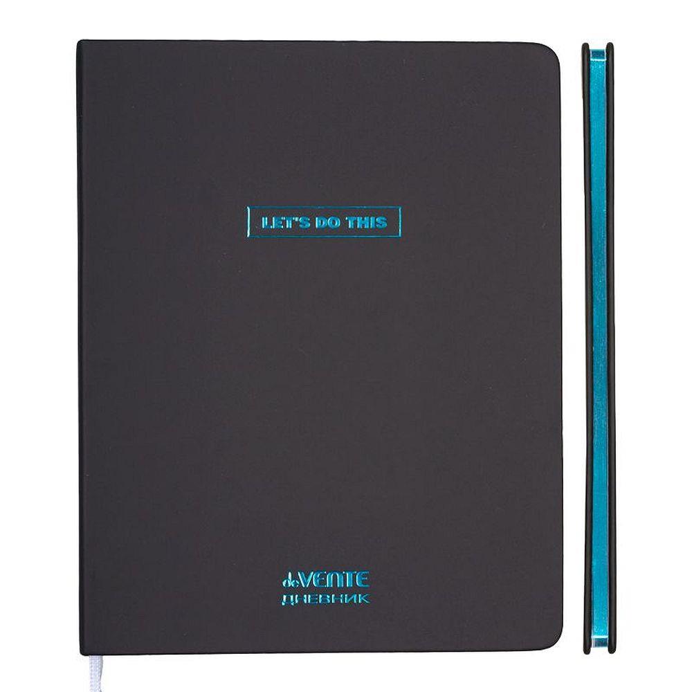 Дневник с универсальным блоком, твердой обложкой из черной искусственной кожи с тиснением цветной фольгой и цветным металлическим срезом, 1 ляссе.