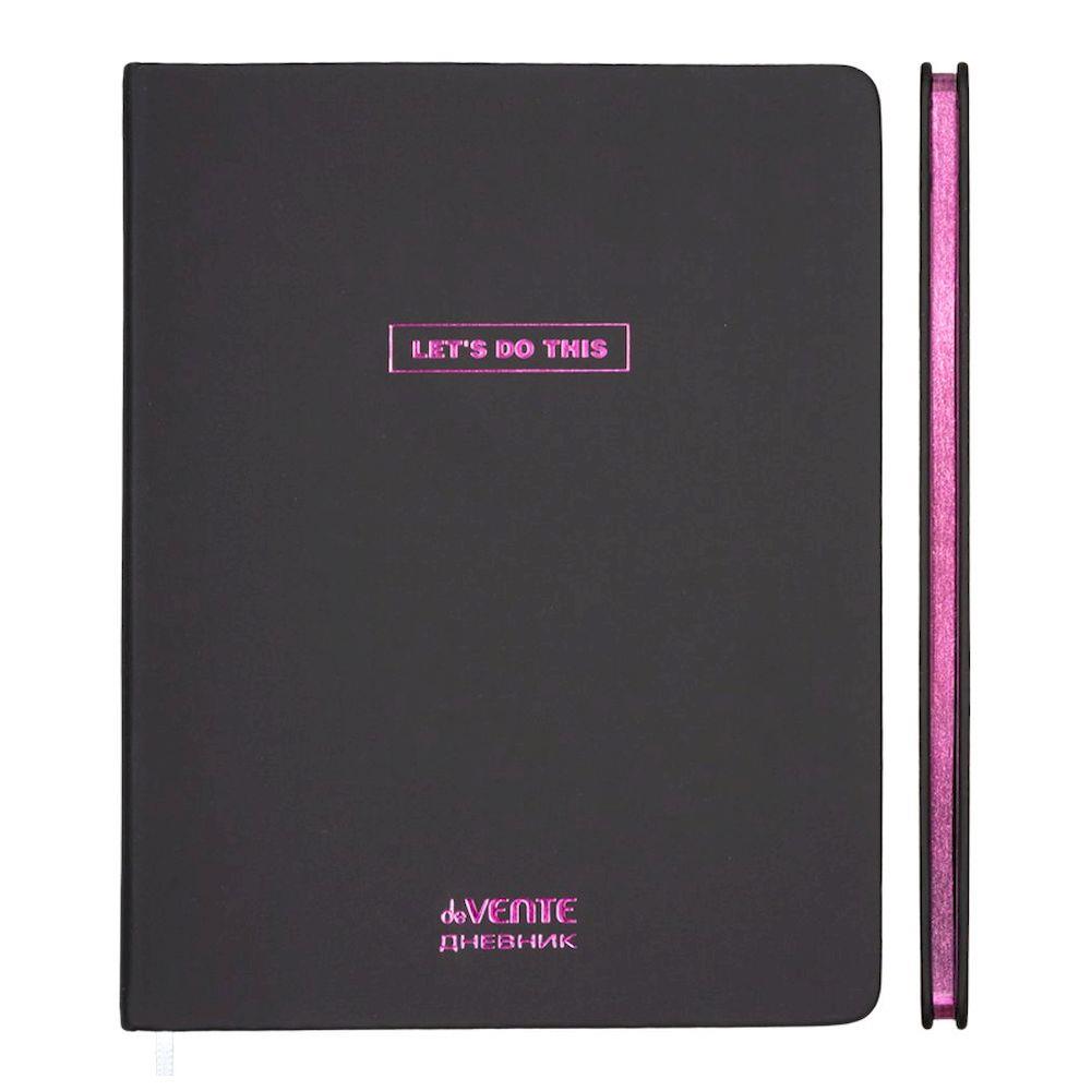 Дневник с универсальным блоком, твердой обложкой из черной искусственной кожи с тиснением цветной фольгой и цветным металлическим срезом, 1 ляссе.