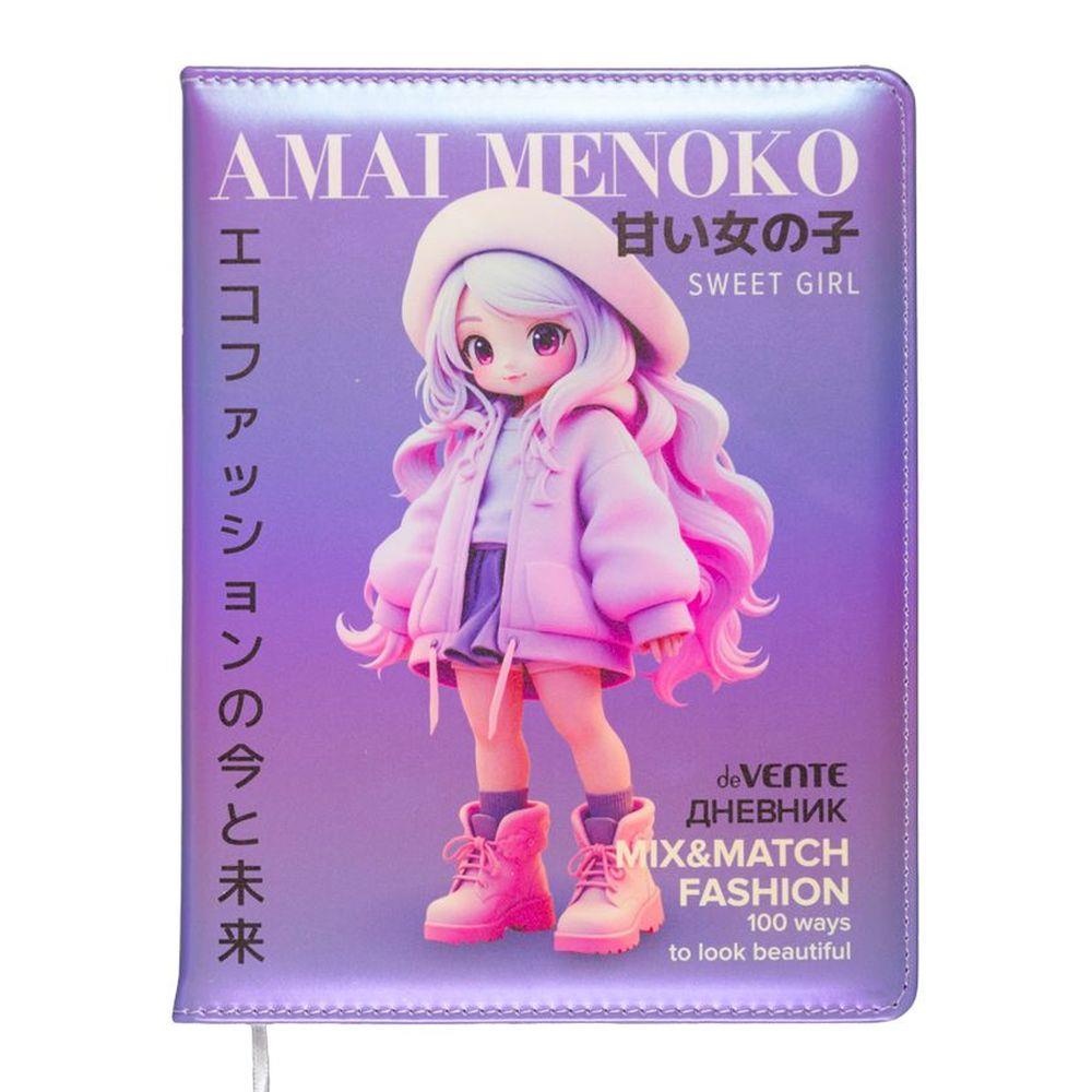 Дневник с универсальным блоком, твердая обложка из искусственной кожи с поролоном, цветная печать, цветной форзац, отстрочка, ляссе.