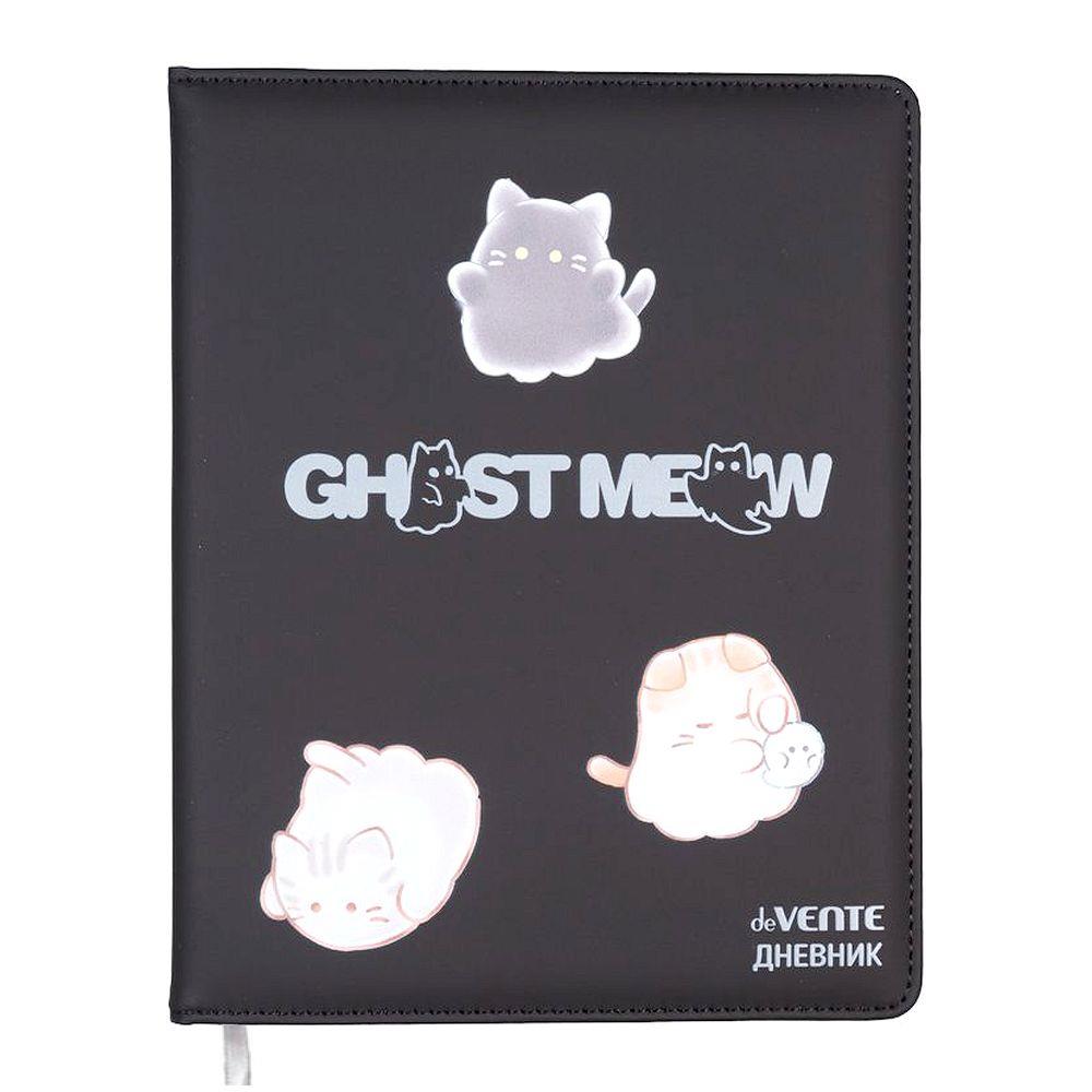 Дневник универсальный deVENTE твердая обложка искусственная кожа с поролоном шелкография 'Ghost Meow' черный