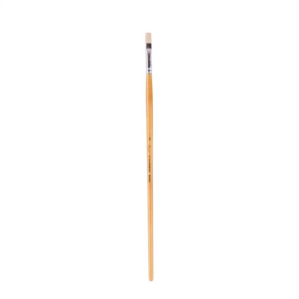 Кисть из щетины с длинной ручкой, плоская. Используется для нанесения широких ровных мазков. Благодаря густоте и длине волоса, кисть удерживает много краски.