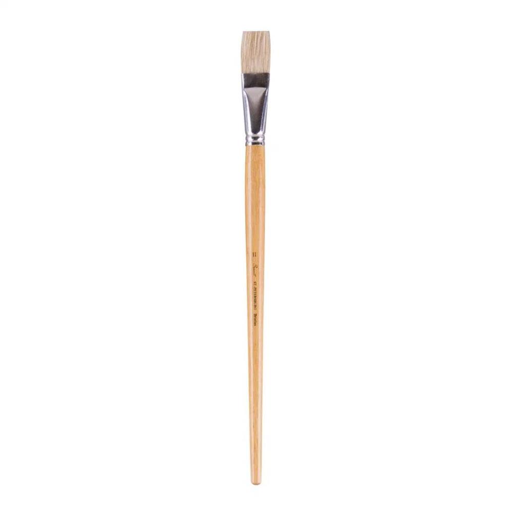 Кисть из щетины с длинной ручкой, плоская. Используется для нанесения широких ровных мазков. Благодаря густоте и длине волоса, кисть удерживает много краски.