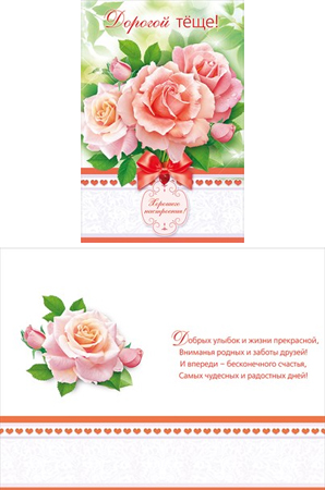 Текст внутри открытки: Добрых улыбок и жизни прекрасной, Вниманья родных и заботы друзей! И впереди — бесконечного счастья, Самых чудесных и радостных дней!