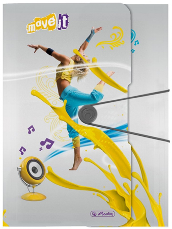 Папки и тетради дизайнерской серии Move It предоставляют поклонникам танцев возможность почувствовать звуки музыки и энергию движения. Товары серии представлены в трех модных вариантах. Розовый заставит танцевать сердца юных модниц. Свежий желтый в сочетании с лиловыми оттенками смотрится легко и радостно. Темный фон с зеленым рисунком впечатляюще воссоздает дух стритданса.