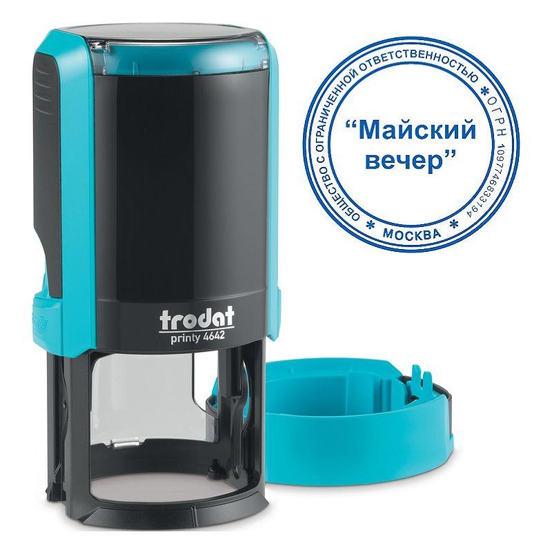 Оснастка для круглой печати представляет собой надежный пластиковый корпус с пружинным механизмом и встроенной сменной подушкой синего цвета. Оснастка имеет площадку диаметром 42 мм для наклеивания готового текстового клише. Подходит для основной печати организации, печати для накладных, сертификатов. Окрашенный оттиск получается автоматически при нажатии на корпус оснастки.