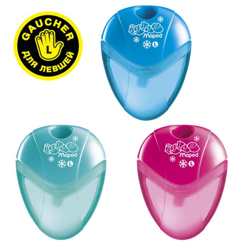 Точилка I-Gloo L - cпециальная серия для левшей: перевёрнутое лезвие позволяет держать карандаш в левой руке и поворачивать его против часовой стрелки.