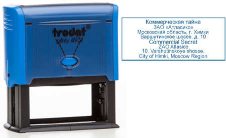 Оснастка для штампа представляет собой надежный пластиковый корпус с пружинным механизмом и встроенной сменной подушкой синего цвета. Оснастка имеет прямоугольную площадку размером 70х30 мм для наклеивания готового текстового клише. Окрашенный оттиск получается автоматически при нажатии на корпус оснастки. Прямоугольные оснастки используются для маркировки бухгалтерских документов, каталогов, проспектов.