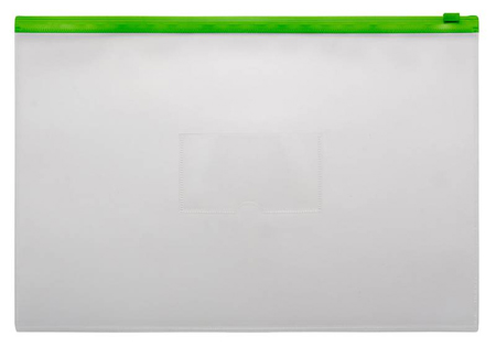Папка-конверт на молнии A4 Бюрократ с карманом для визитки пластиковая 150мкм прозрачная зеленая молния