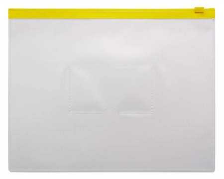 Папка-конверт на молнии A5 Бюрократ с карманом для визитки пластиковая 150мк прозрачная желтая молния