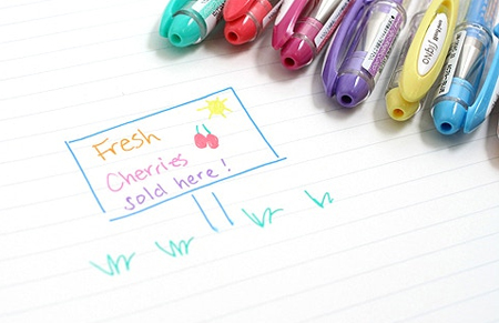 Uni-Ball Signo Angelic Colour — это уникальная пастельная гамма цветов. Чернила непрозрачные и великолепно подходят для рисования на черной бумаге. Незаменимы в оформлении плакатов, стендов, стенгазет, аппликаций. Цветными гелевыми ручками Uni-Ball Signo приятно писать: пигментные чернила имеют очень низкую вязкость, что обеспечивает легкость письма, практически без усилий. Корпус ручки выполнен из прозрачного акрила. Наконечник изготовлен из нержавеющей стали. Канал подачи чернил оснащен двойным шариком.