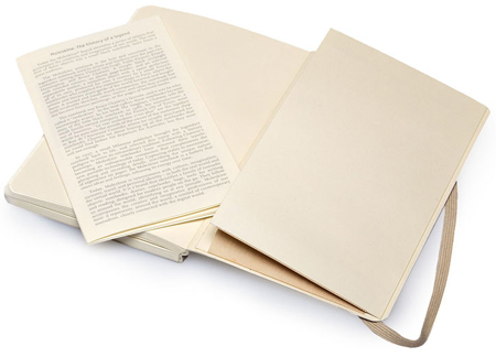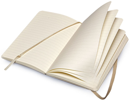 Эта записная книжка карманного формата состоит из 192 страниц в линейку, которые защищены от изнашивания при помощи мягкой обложки бежевого цвета. Каждый Moleskine имеет придерживающую резинку, кармашек для мелочей и мягкую закладку, и эта модель записной книжки — не исключение.