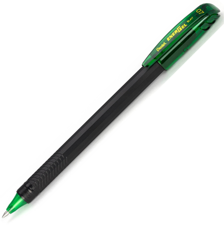Ручка гелевая Pentel 0.7мм 'EnerGel' черный рифленый корпус зеленая