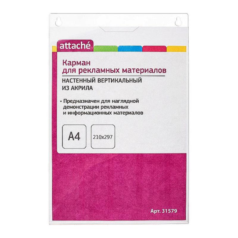 Вертикальный настенный держатель для таблички Attache предназначен для размещения информации. Поставляется в защитной пленке. Материал: акриловое оргстекло 2мм. Размеры: 210х297x10мм Вес: 258г