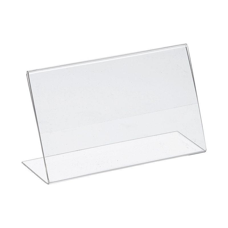 Настольный держатель для таблички, ценника предназначен для одностороннего размещения информации. Поставляется в защитной пленке. Материал: акриловое оргстекло 1.5мм Размеры: 120х80х40мм.