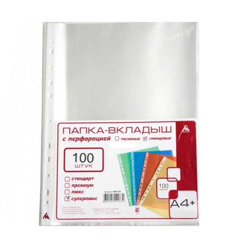 Мультифора 100мкм A4+ глянцевая 100шт Бюрократ Супер Люкс