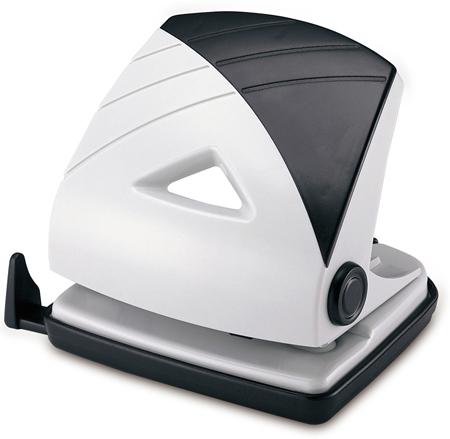 Дырокол с металлическим корпусом. Пластиковая рукоять c мягкой вставкой. Линейка деления на форматы. Съемный лоток для конфетти. Пробивает до 25 листов бумаги (80 г/м²).