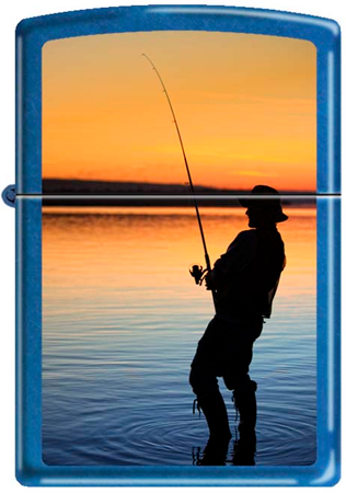 Зажигалка Zippo имеет металлический прямоугольный корпус с подпружиненной крышкой на петельке, такой, что крышку можно открыть одной рукой. Фитиль зажигалки закрыт от ветра специальными стенками с отверстиями, которые защищают пламя от боковых порывов ветра. Поверхность Sapphire с полноцветным изображением ночной рыбалки.