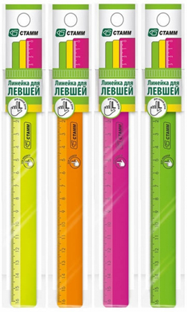 Специально для левшей: градуировка нанесена справа налево. Яркие флуоресцентные цвета. Безупречное качество пластика. Ровная четкая миллиметровая шкала. Безопасные закругленные углы. Материал полистирол.