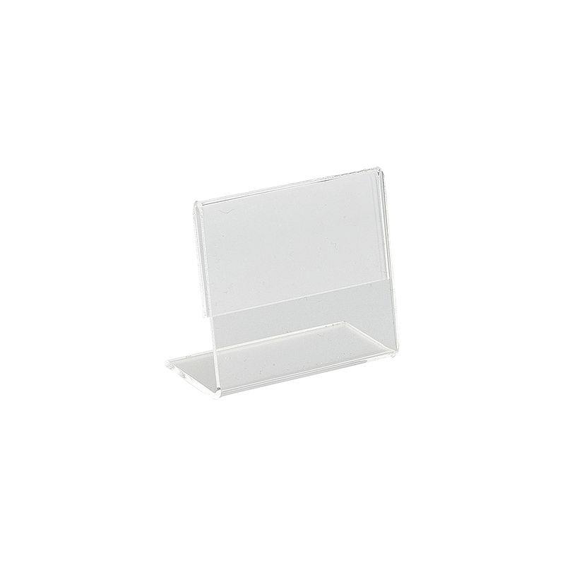 Настольный держатель для таблички, ценника предназначен для одностороннего размещения информации. Поставляется в защитной пленке. Материал: акриловое оргстекло 1.0мм Размеры: 50х40х25мм.