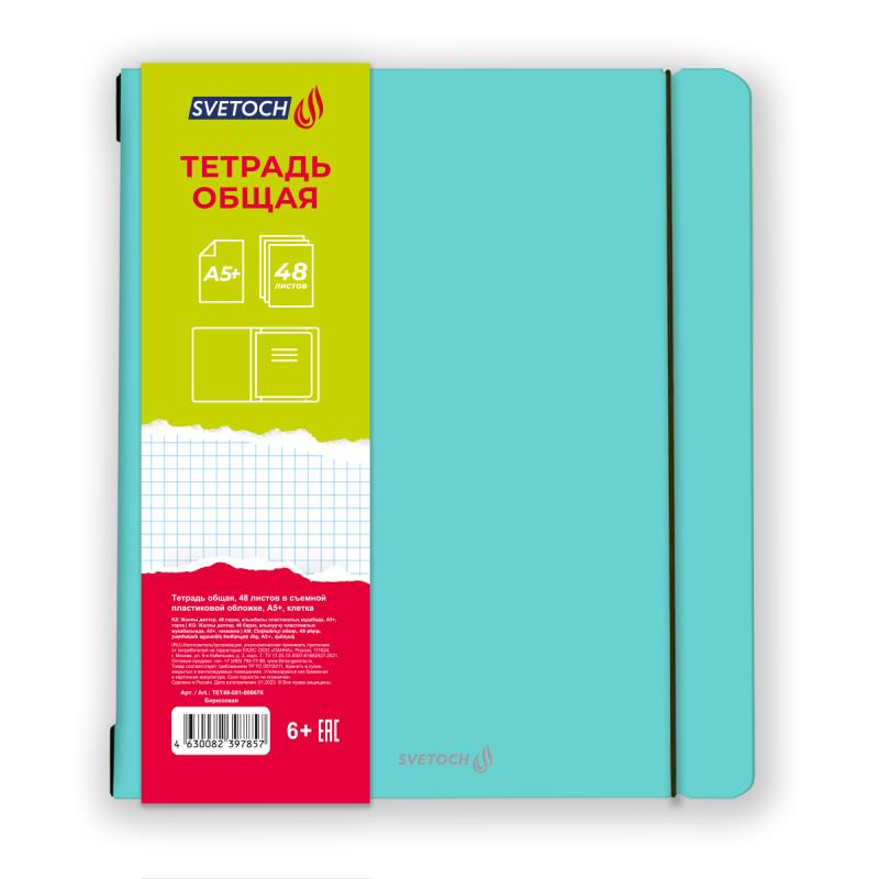 Тетрадь A5  48л кл на скрепке Светоч съёмная пластиковая обложка на резинке Бирюзовая