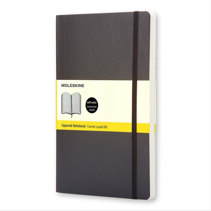 Записная книжка A5  96л клетка Moleskine® Classic Soft Large мягкая обложка на резиновой застежке черная