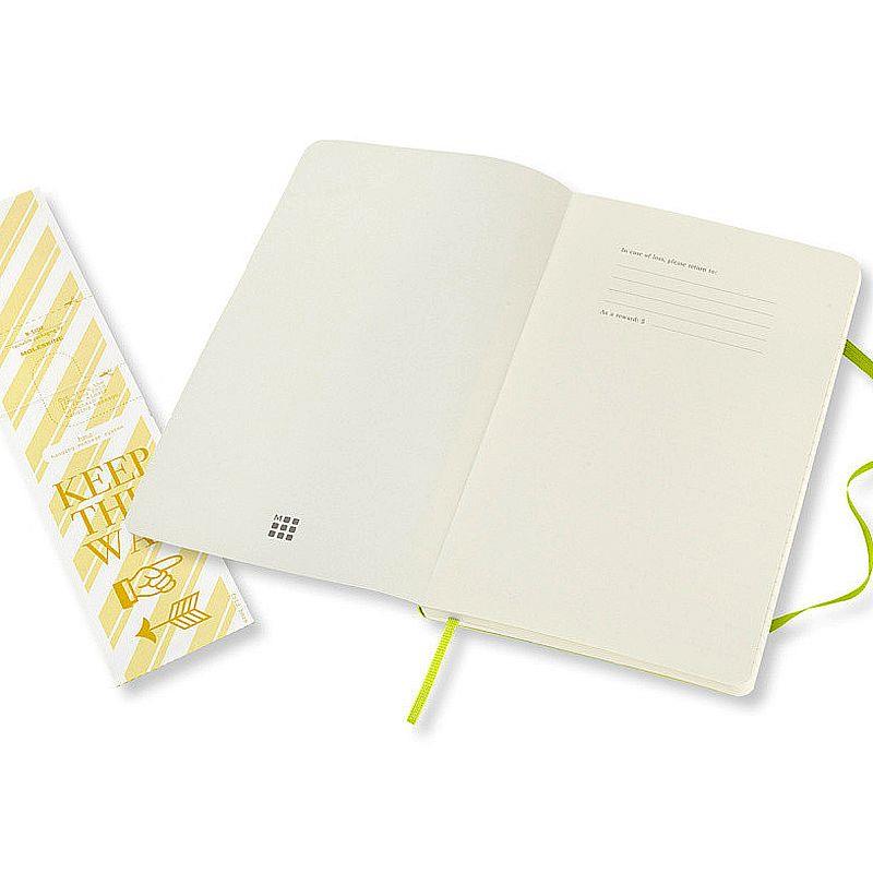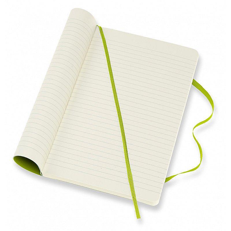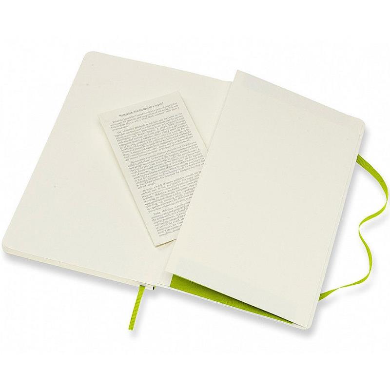 Записная книжка в мягком переплете имеет 192 разлинованные страницы, которые выполнены из высококачественной не желтеющей бумаги с отличной впитываемостью чернил. По традиции Moleskine записная книжка оснащена придерживающей страницы резиновой застежкой, закладкой и внутренним кармашком для мелочей, выполненным из картона и ткани.