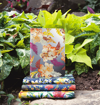 На создание этой серии Paperblanks вдохновили современные гавайские ткани и дух радостной гармонии, который они пробуждают. Ни один вид одежды не спутаешь со знаменитой гавайской рубашкой. Это заявление о модности владельца демонстрирует удивительные пейзажи Гавайских островов и духовно-философскую сторону культуры островитян. Истоки текстиля тики уходят корнями в традиционные ткани капа, изготовлявшиеся из древесного волокна. В наши дни на смену им пришли эти популярные рубашки. Ярко окрашенные набивные ткани с цветочно-лиственным орнаментом неизменно выражают красоту гавайской природы, напоенной духом алоха — это не просто традиционное приветствие, это образ жизни. Ало означает «разделяй настоящее», а оха — «радостная нежность». Рубашки в гавайском стиле завоевали признание в 1940-х гг. благодаря Альфреду Шахину, он первым ввел тропические орнаменты в сферу моды. Образы роскошной природы Гавайев в его рисунках для тканей выражали послевоенный оптимизм. В наши дни рисунки на ткани, в том числе изображенные на обложках этих книг, по-прежнему передают сущность алоха.
