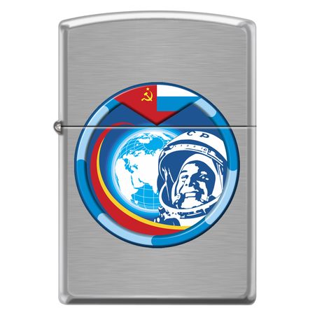 Зажигалка ZIPPO Гагарин с покрытием Brushed Chrome, латунь/сталь, серебристая, матовая/