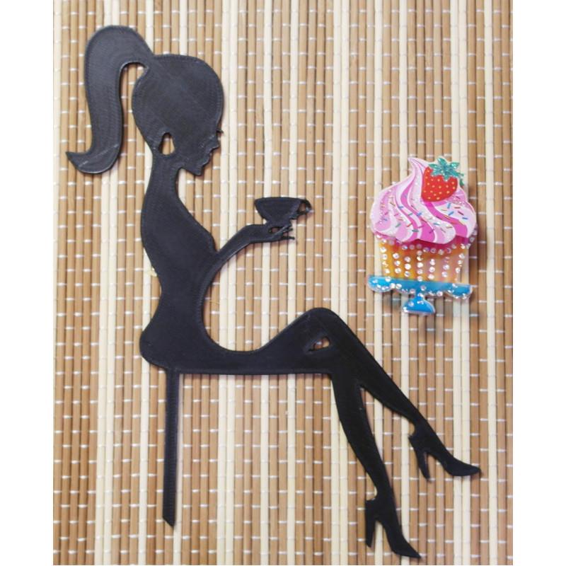 Топпер Силуэт сидящей девушки с чашкой акриловый 17х13см