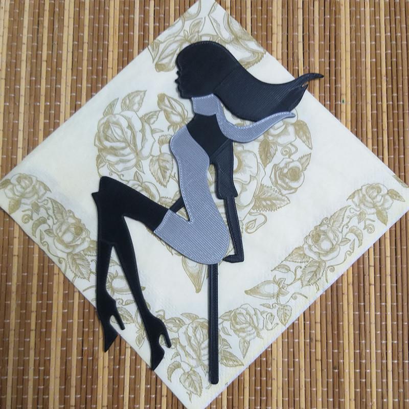 Топпер Силуэт сидящей девушки акриловый 18см черный
