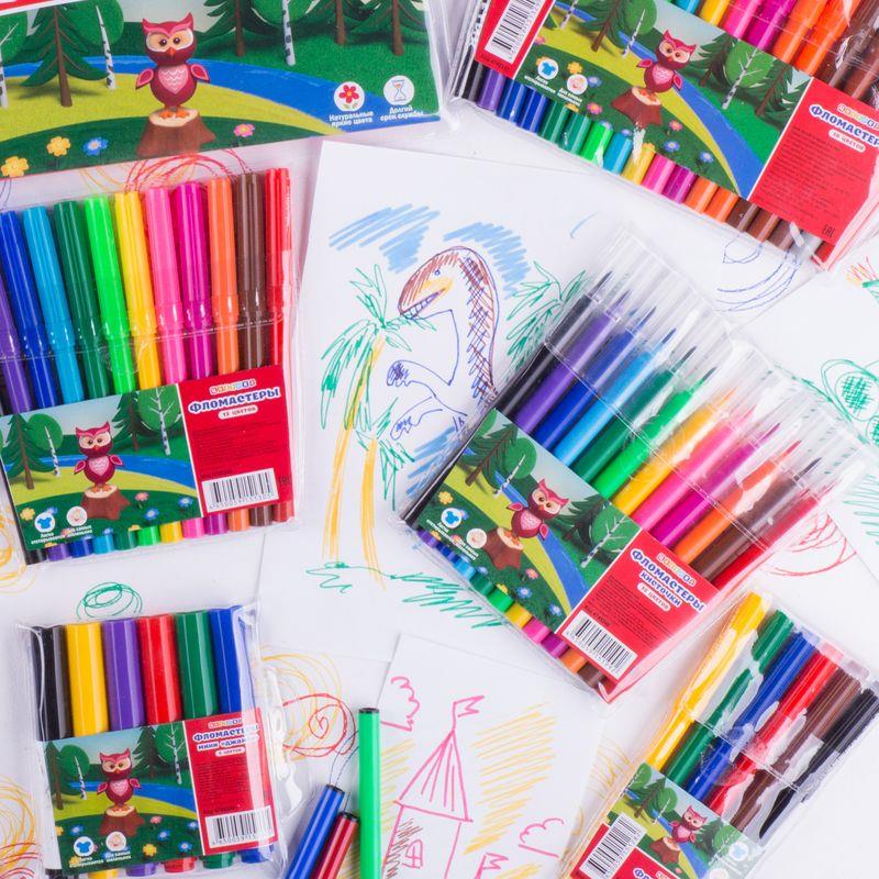 Детские товары: ручки, линейки, ножницы, клей, фломастеры, карандаши цветные, краски