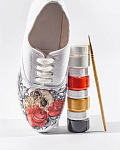 Эти густые, кремообразные краски отлично ложатся на хлопок, лён, кожу и кожзам, образуя гибкое и прочное покрытие, устойчивое к воде и свету (в зависимости от пигмента). Подходят для создания фрагментарных рисунков, надписей, орнаментов и узоров — не для полной окраски ткани.