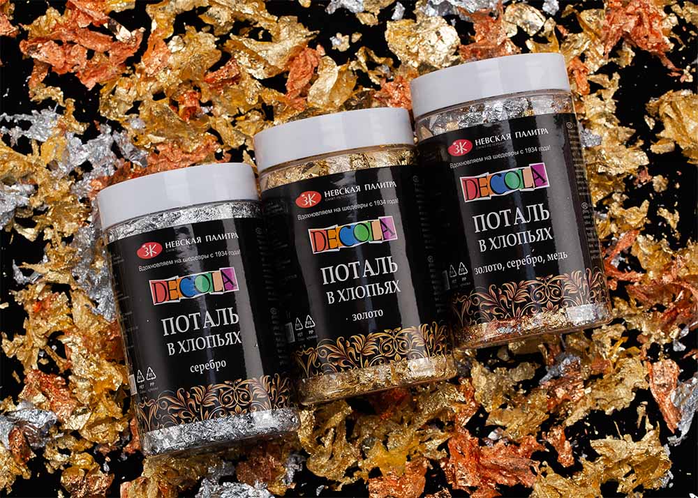 Поталь — универсальный материал, который можно использовать в самых разных техниках: