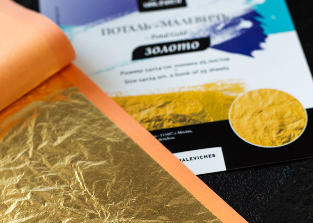Со временем появилась поталь — более доступная альтернатива золоту. Внешне она почти неотличима: это тонкие металлические листы или хлопья из сплавов меди, алюминия и цинка, которые создают эффект сияния золота, серебра или меди. Поталь исторически использовали для декоративного оформления рам, мебели, интерьерных панелей и реставрационных работ, где не требуется настоящая позолота.