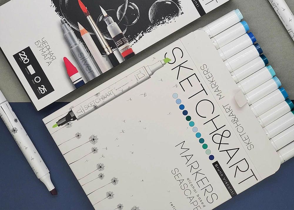 Маркеры BrunoVisconti® Sketch&Art — это инструмент для тех, кто любит работать с цветом. Они подходят художникам, дизайнерам, архитекторам, студентам художественных направлений и просто тем, кто получает удовольствие от рисования. Эти маркеры можно использовать для скетчей, иллюстраций, каллиграфии, оформления и графических проектов.