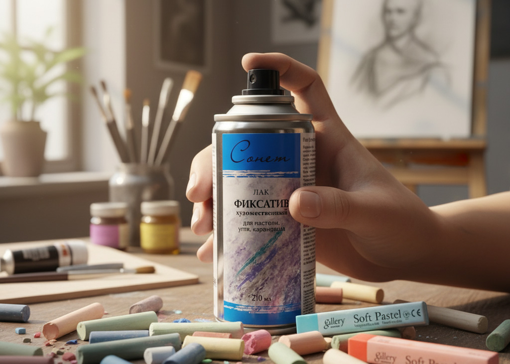 Художники используют разные способы, чтобы закрепить пастель: кто-то берёт лак для волос, кто-то даже сироп или просто оформляет работу под стекло. Есть и те, кто вообще не применяет никаких фиксативов.