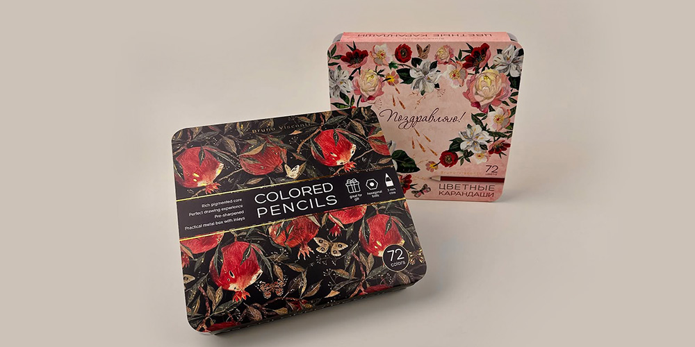 Наборы цветных карандашей Bruno Visconti® в металлической коробке — это 72 насыщенных оттенка для рисования, обучения и творчества. В коллекции представлены стильные дизайны: