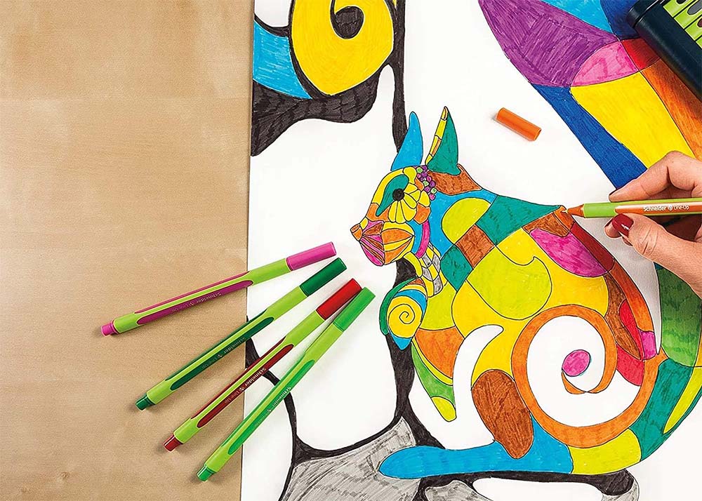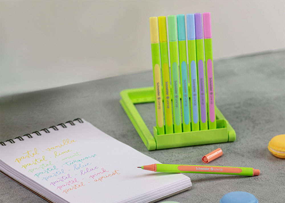 Капиллярные ручки Schneider Line-Up – это тонкие ручки с узлом 0,4 мм, которыми удобно писать, рисовать и раскрашивать. Линия ровная и чёткая, чернила не размазываются, а держать ручку удобно даже при долгой работе – корпус трёхгранный с прорезиненной зоной захвата. Все ручки идут в пластиковом пенале, который можно поставить на стол как подставку, а чернила имеют экологический сертификат Blue Angel.